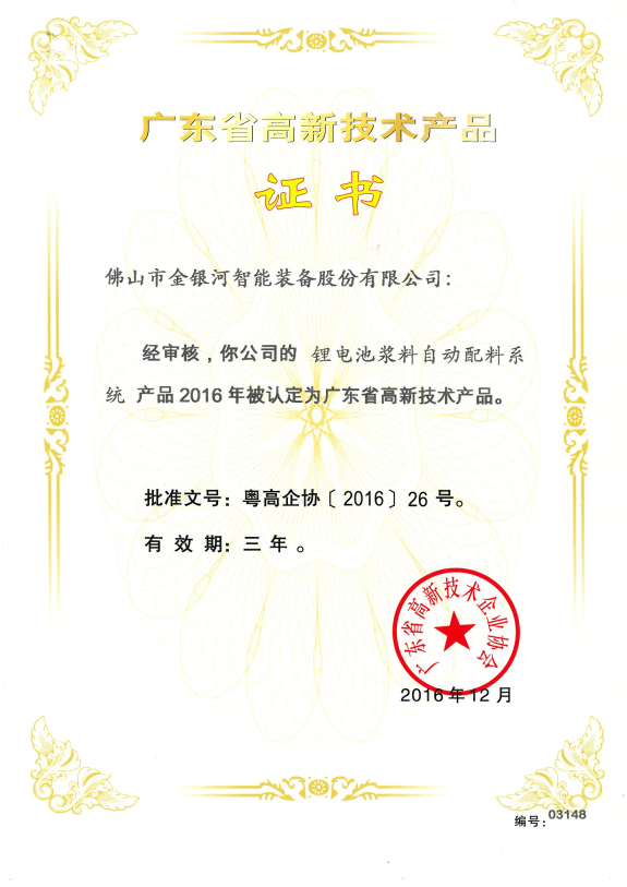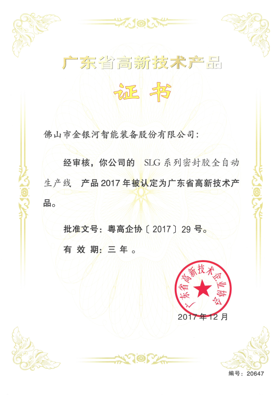 SLG系列密封胶全自动生产线省高新手艺产品证书